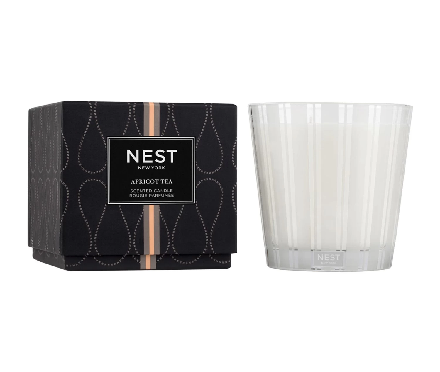 Create a relaxing moment with this 3-Wick Candle featuring the silky smooth essence of English apricot wrapped in the richness of black tea leaves, bergamot, and warm golden amber.