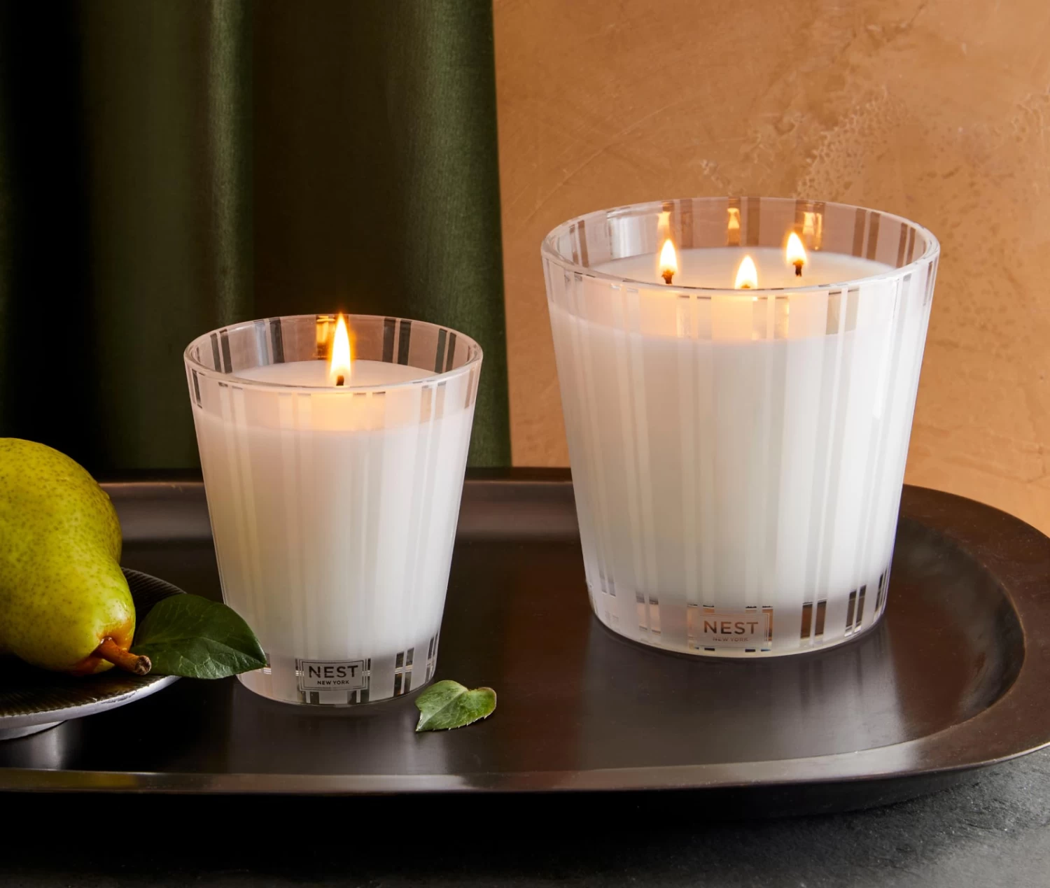 Create a wonderfully mellow mood with this 3-Wick Candle featuring velvety Anjou pear and crisp apple blended with crushed lemon leaves, hints of peony, white musk, and amber.